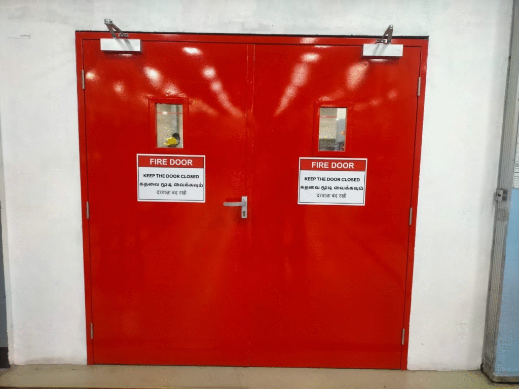 Built to meet stringent national and international fire safety standards, our fire doors are widely used in industrial plants, commercial buildings, residential towers, hospitals, shopping complexes, educational institutions, warehouses, and emergency exit pathways.These doors provide safe evacuation routes, protect critical areas, and prevent the rapid spread of fire—making them an essential safety installation for any property.